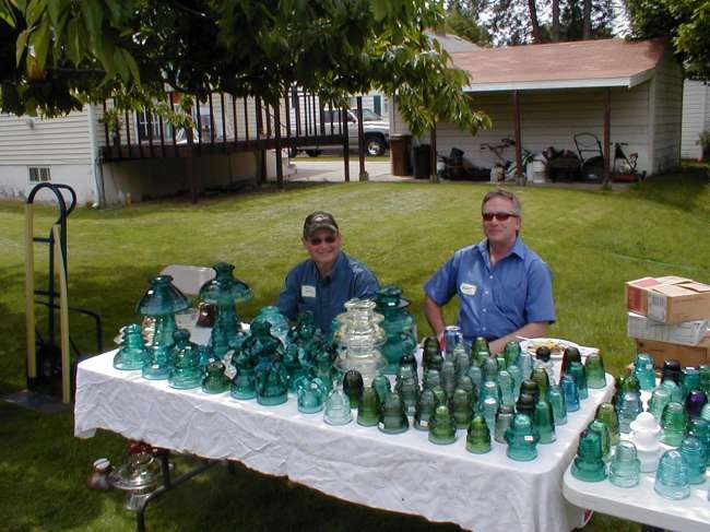 Well here is a rare sight. My two traveling companions from Eastern Montana actually behind the table helping out. As soon as the boxes and tables were bought from my truck....Poof....they disappeared to go check out other tables. As Peggy types this she thinks hmmmmm now maybe he knows how she feels. On the left is Steve Hostetler and on the right is Montie McDowell. Together we are the Three Amigos from Montana. |
