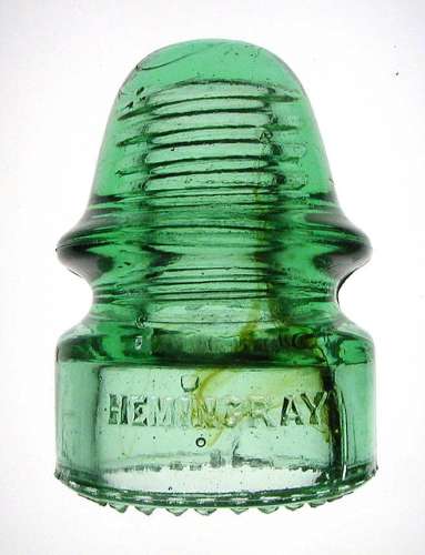 Here is an oddity. A green CD 134 Hemingray piece, with the Patent May 2 1893 date on the rear skirt. A nice swath of amber from the front dome down into the skirt. You don't see many Hemingray pieces with amber.