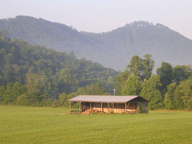 Another rural farm outbuilding, and some of the Appalachians rising in the background.