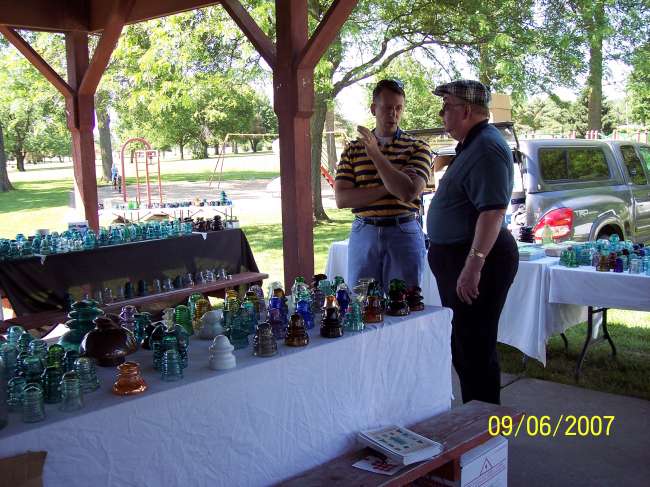 Skip Lowe and Richard Bell checking out some of the items brought to the swap.