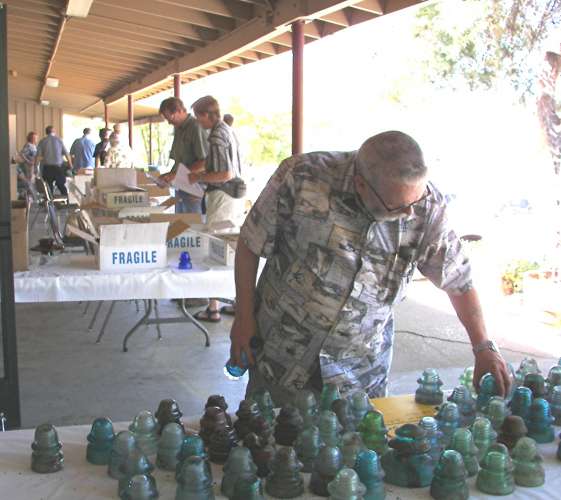 Larry Shoemaker from Reno, NV looking over a group of insulators that were brought in for appraisal.