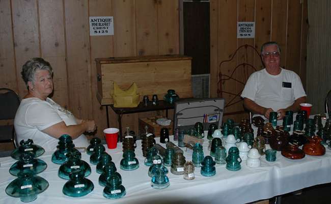 Longtime collectors, Judy & Greg, relaxing behind their sales table. Greg approached me at the show with an unusual unembossed CD 126 blobtop and asked my opinion on it. After studying it for several minutes and offering an opinion, Greg promptly handed it to me as a gift! What a great bunch of folks we have in this hobby, including Greg & Judy! |