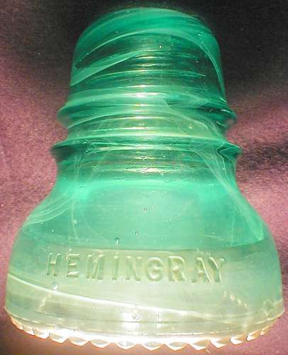 After a bit of cleaning and some editing, this picture shows this exceptional piece from the Hemingray side. Lots of milk swirls overlapping have turned this to a jade milk.