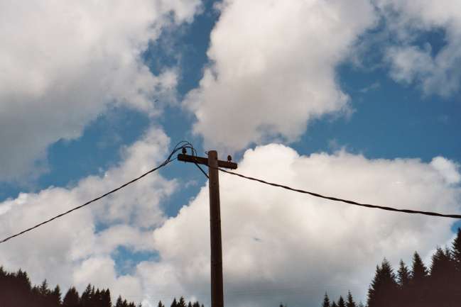 This little pole is across the road from a PGE (Portland General Electric) transformer pole near Grand Ronde, Oregon. At one time it carried 2 wires but somebody decided to "Fuss" with it and put in a modern twist drop. Just couldn't leave well enough alone but at least they left the crossarm and insulators! |