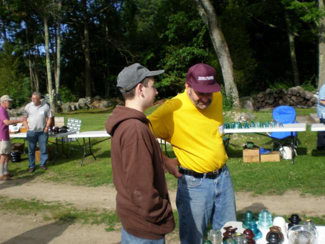Father and son combo of Mike, the son, and Rick, the dad, Wiesman looking over their sales table. Mike`s first love in collecting is sprinkler nozzles. Rick has always been a mud man.