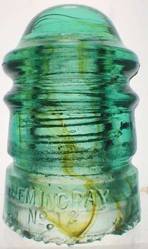 This insulator, while it has some teething issues turned out to be a very nice looking Hemi 12 anyway. Has GOOD amber swirls, loops and streams on and above the Hemingray embossing and lightly into the dome. Don't see a lot of these Hemi 12's with too much major amber in em. |