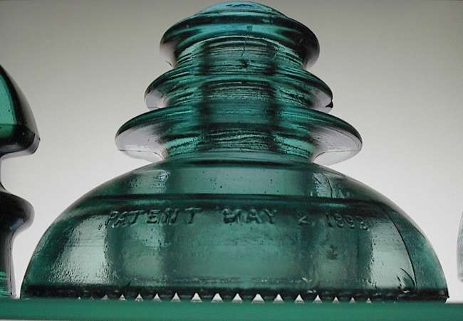 A neat, early power piece in aqua is shown here. This insulator also has an overpour on it's outer skirt. If it wasn't for poor quality control, this hobby wouldn't be as interesting as it is!