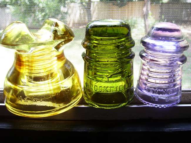 Here is a trio of colors that, at first, you would think there was some staining or something going on.........but not where I'm from ........no staining going on here. I put pics of the yellow flashed amber CD 252 previously on the site(last week). It is uncommonly yellow. I have orange flashed ones to, one of which also is considered to be yellow flashed amber........but not nearly as yellow as this thing. I believe it to be one that simply did not make it all the way through the flashing process. The second one is a Brooky in a mesmerizing olive. And last of all, a lilac Hemi no 9. |