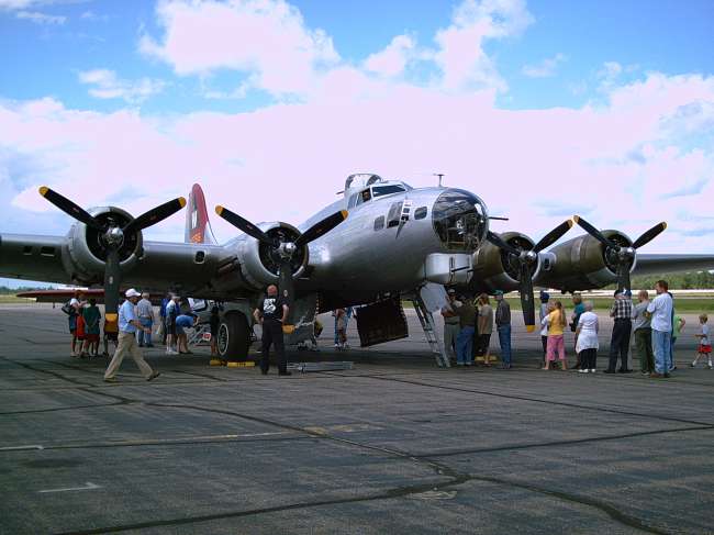Recently we had the opportunity to tour a restored WW2 bomber At the St. Cloud, MN airport. I have an interest since my Uncle was a crew member during the war. I have a picture of his crew that he gave me back when I was a teenager. It is a beautifully restored plane. The plastic nose cone is where the bomb site is located, the bombadier sat there when they dropped the bombs. Generally the bombadier was an officer, but this was not always the case. I would imagine a shortage of crewman would dictate that. |