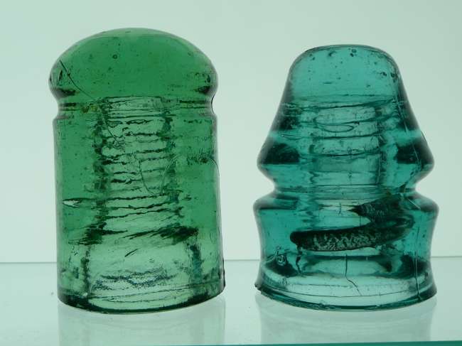 Neat green 127 straight side and a sneaky leach encased in a 131...enjoy! The leach has been verified and certified by the eminent Willard Peebles who recently identified the famous "Johnny Darter".