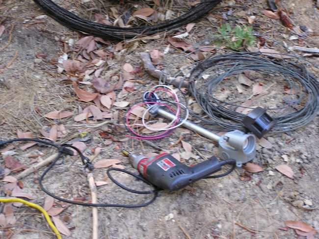 The materials for an outdoor lighting project at out cabin. The trees will provide the vertical supports for this project.