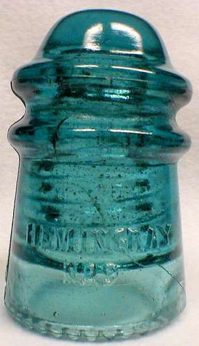 Today was our annual "swappers day" at a small town near here. Every year at least 1,000 sellers show up and they sell in booths on a 500 acre field. You can buy anything from coon dogs to airplane parts in this flea market and insulators also happen to be on the menu as well. I snagged this nice leaner Hemingray No 9 in lightly fizzy Hemi blue in a lot of 3 other insulators, a SKEB and a porcelain were also in the mix. Check out that beautiful prismic embossing! Not bad for only $3 with book being around $75! |