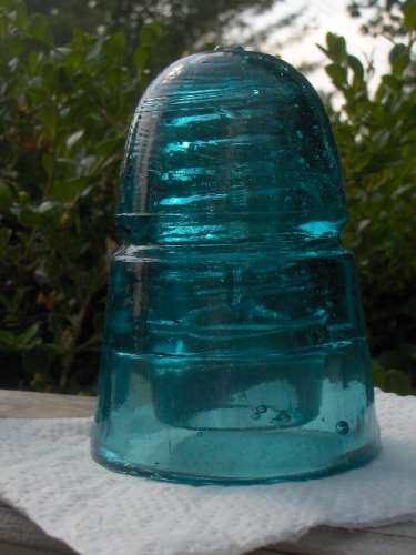 Nice / embossed 145, we got this one down from the Xenia&columbus railroad that is now a bike path. Also saw a peacock, odd. (not peacock blue, the large bird) This insulator has a nice milk swirl in the dome but every time we get one down it lands on some rocks giving it a nice fish=eye. -Bryan |