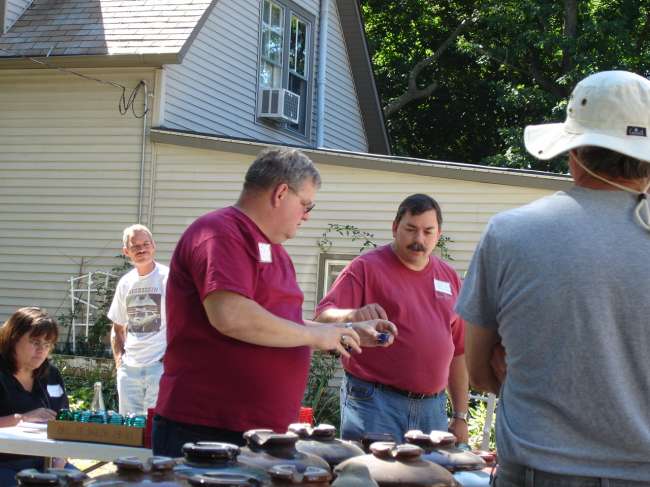 Greater Chicago Insulator Club Swap, Racine, Wisc. Rick Soller auctioneer, Russ & Marge Frank helping out with assisting the auctioneer.