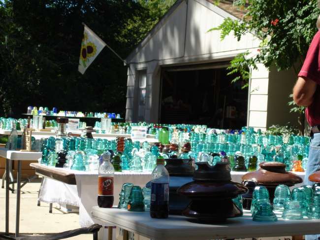 Greater Chicago Insulator Club Swap, Racine, Wisc. with loads of glass and porcelain insulators for sale or trade...just awesome. The weather just could not be more perfect, 75 degrees and sunshine. low humidity and low bugs. Thanks for spraying earlier Randy. |