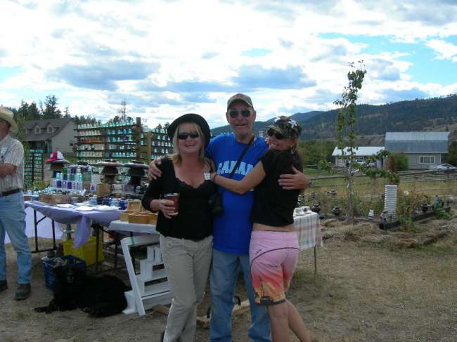 Part of a show hosts duties is to welcome visitors and guests to the Merritt Insulator Show. Here I am saying hello to the "Insulator Gurls", Renee and Kim. Check out Kim's hot pink shorts featuring telegraph poles with insulators. Talk about dressing for the occasion. Renee, Kim and I met several years ago when they wanted to learn more about insulators, and we have since become very good friends. It was a real treat having them at the show, and to remember some of the crazy and funny adventures we had. Show hosting is sure tough work. |