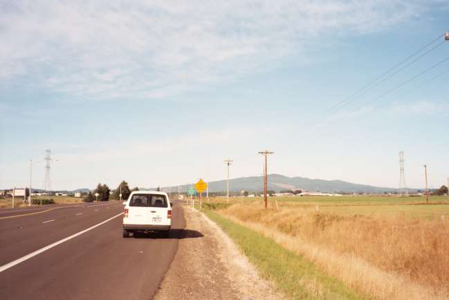 A distant shot showing the span between the tower poles. The tap pole is barely visible and blends well with the sky.