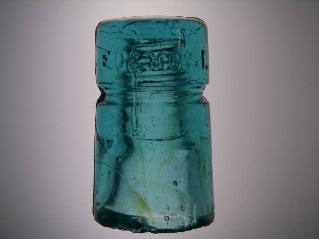 Aqua loaded with amber. I need an E.C. & M. expert to help pin down the specific embossing.