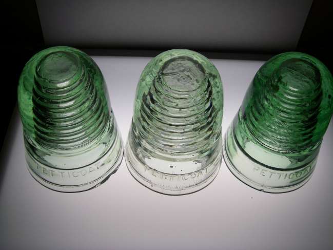 On the left is an [050] in light apple green. In the middle is an [050] in ice green. On the right is a [100] in apple green.