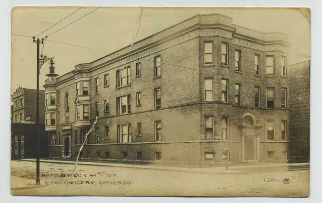 The vast majority of street lights in the "days of yore" operated on a series circuit...just like a string of today's miniature Christmas lights. These systems had provision for voltage regulation and fixture design so that all lamps remained lit if any in the "loop" failed. If you look closely you will see a "strain" or "breaker" insulator separating each end of the two series street lamp wires leading to the fixture. Presented is a photo of a Chicago neighborhood c.1910 with an enclosed arc light in the foreground. Pintype insulators were employed as they were here with many thousands of other installations like this one throughout the US around a century ago. |