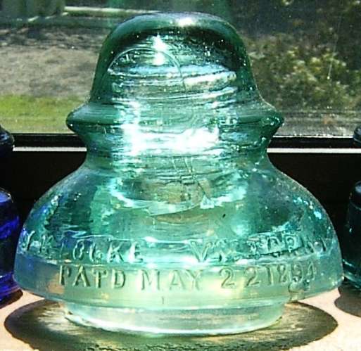 Here is a light aqua LOCKE CD 287 I gave to my mother Eliz Johnson and I believe it is one of her favorite insulators.