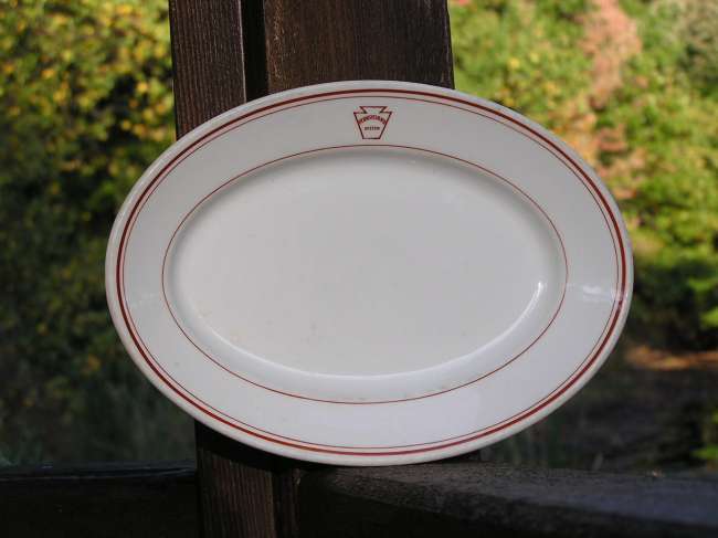 Here`s a piece of railroad china that I took in a trade. It`s a piece of Syracuse China made for the PRR