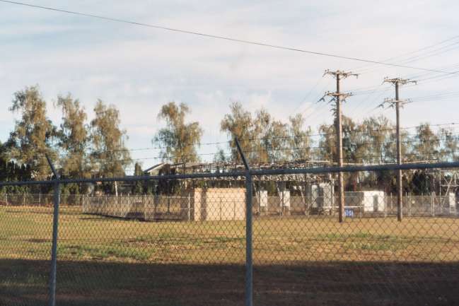 This is the oldest substation on the municipal Forest Grove (Oregon) Light & Power system. They get their power to this sub. direct from the BPA (Bonneville Power Administration) from a 115,000 volt line that also serves Tillamook and Vernonia Oregon. This a hard one to get a good photo of because not only is there a fence around the sub. itself, but also a perimiter fence around the larger portion of the property. I would like to get a closer shot because the switches in the sub look old and are on brown insulators but this will have to do for now. |