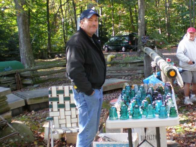 Corky Miller looks like he`s having an okay time. Corky drove down from Amsterdam, NY. Some of us will be seeing him again on the 27th at the Capital Regional Antique Bottle and Insulator Club`s Albany show. Looks like insulators are going to be well represented at that show. We hope all the insulator collectors in the area will make an effort to support the show. |