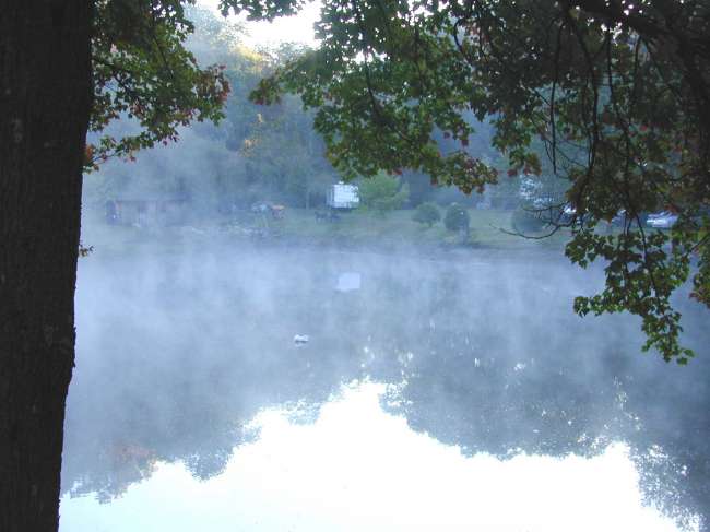 Overlooking "On Golden Pond" at Larry Emmon's as the fog stars to burn off in the morning. A nice clear, cool fall day. We are expecting a good crowd!