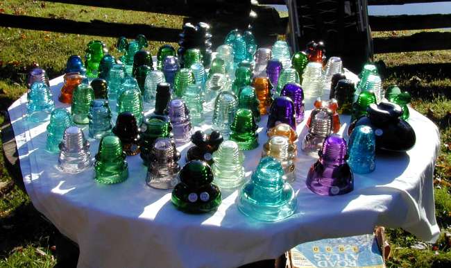 Another early bird, Bob Longe has his table of quality colorful glass setup.