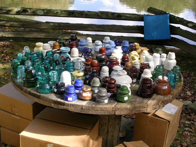 Matt Grayson's table of glittering glass and porcelain perfection. Quite a few items from Argentina and Chile on the far rhght hand side, two CD 154 Cristalerias de Chile and several porcelain pieces, including one marked "FAPA" on top, from Argentina. The CD 154s and one other followed me home that fine day! |