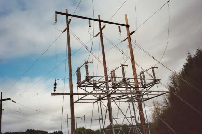 The first switch set is shown here, just before the tap connection to Timber, OR. Some old pyrex disk insulators are still in place mixed with porcelain. The switches on this one look brand new.