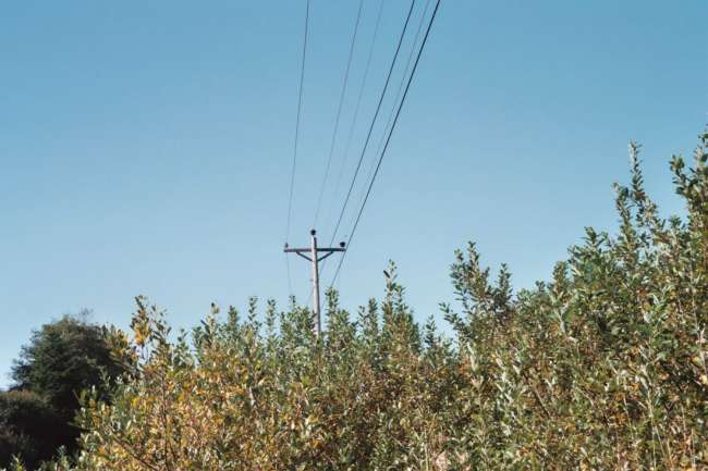 Another shot of the last pole with a replaced insulator. The PUD has to replace insulators on a steady basis this close to the ocean, when they approach the point of failure. The flashover will start a crossarm or pole fire! And I have seen it happen on occasion, back in the days when predecessor Mountain States Power had this service area and ran 22,000 volts. |
