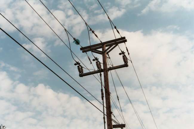 The next pole north is double dead ended and here is a lonely French glass dead end unit apparently still not leaking badly enough, the other 5 replaced and long gone. On Tillamook PUD near Twin Rocks, OR.