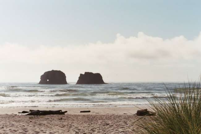 These 2 huge rocks stand alone right off the beach and are how the community got it's name, of course. Twin Rocks is now a "suburb" of Rockaway Beach, a larger town 1 mile north. The rocks are unusual because there a no other rocks near them out in the ocean north, or south for at least 30 miles. Note that the south rock has a "hole" through it and it is considered great, but risky sport to go through it in a boat! During storms, the waves sometimes go clear over the top of them and crash through the hole! This is insulator related only because we will be looking at some power poles on shore....right in front of the rocks. |