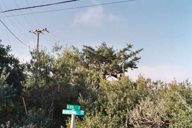 We are standing at the corner of Minnehaha and Alder streets, 1 block west of Hwy.101 toward the ocean. Alder St. dead ends here but actually there is a jog (or "dogleg") to the left and the street continues north as Breaker Ave. (an ocean wave not a circuit breaker(; ! The power lines are double dead ended for 2 poles, as they also make the jog. Minnehaha St. ends as a sand access trail right on to the beach. I thought this street was named after Dave Dahle's home county but local history says it was named after a 1910 era lady named Minnie Hadley, who went by "Minnehaha" as a nickname! |