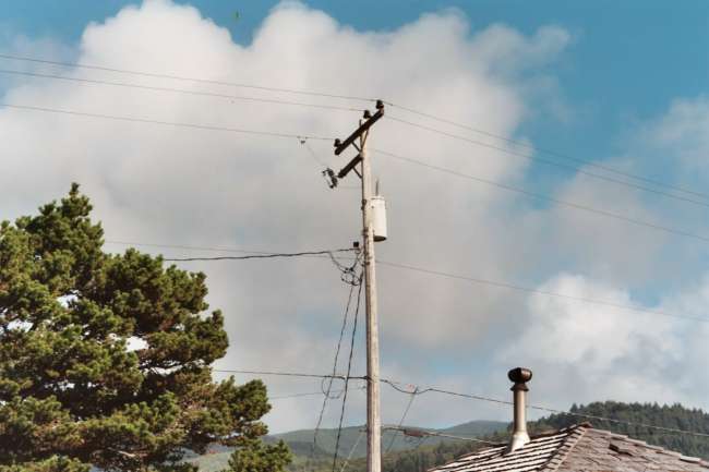 This Tillamook PUD pole still has the original Victor Ins. U-414 style insulators, which were installed in the 1950's. In fact, this is the dominant insulator used along this part of the line, which runs parallel to the shoreline within one block of the surf. There are some replacements, but if you look at the U-414 close up and on the ground...it is huge! It also has a long leakage path and seems to stand the test in service pretty well. It's kind of a fusion of a high-top and a bowl type power insulator. |
