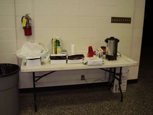 Our coffee and doughnut table. Every show needs one of these.