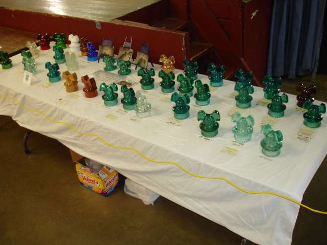 Springfield Mid-Ohio Show Nov. 3-4, 2007 Display of Micky Mouse Insulators by Alan Stastny, note that the power co. even broke the bottoms off so the insulators would fit along the wall for a wire to go verticle.