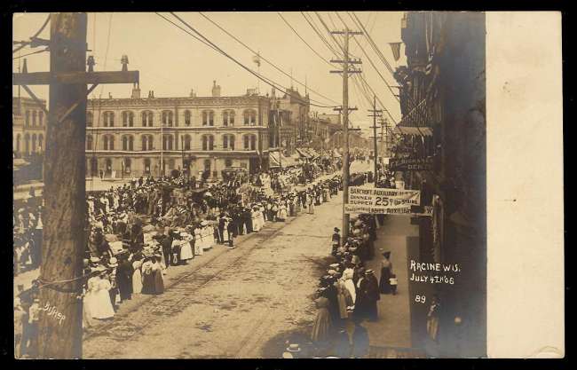 Photo taken on July 4, 1906. Note the CD 160 and possibly a CD 162 insulator(?) on the crossarm in the left foreground. Also notice how primitive and crude the poles appear! As if they were skinned logs quickly put into utility service!