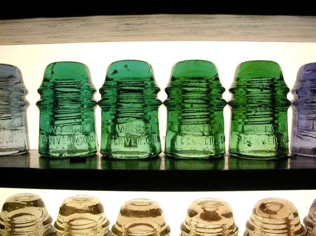 My lineup of 4 green WFG tolls. Left to right they are: a teal green with a green dome; a teal green with a green skirt; a green with an aqua dome bands; and finally (my latest acquisition) a dark green with amber waves. Enjoy!!