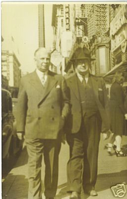 What's that guy on the left with his hand in his pocket got? And with what intention?! These might have been Depression-era automobile repo men. Maybe not... too! Definitely not friendly-looking winning candidates for a local welcome wagon committee. I think their "pursuit" was a bit more than that! |