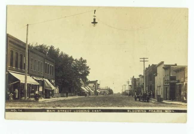 With an unpaved roadway and "newer-style" arc light on a span-wire (on a pulley-lowering mechanism for maintenance), this community's center also had an electric distribution line supported on two 6-pin crossarms as you can see on the right.