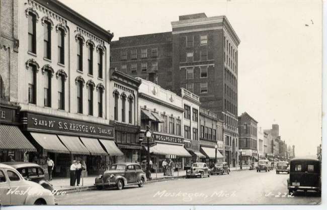 Almost side-by-side, here are two of the most well respected downtown chain stores that most of us post-war "boomers" vividly and fondly recall as we were growing up as kids! Photo taken in the 1940s in Michigan. Through the late 1960s, storefront scenes like this also were common elsewhere in the downtowns of America. |