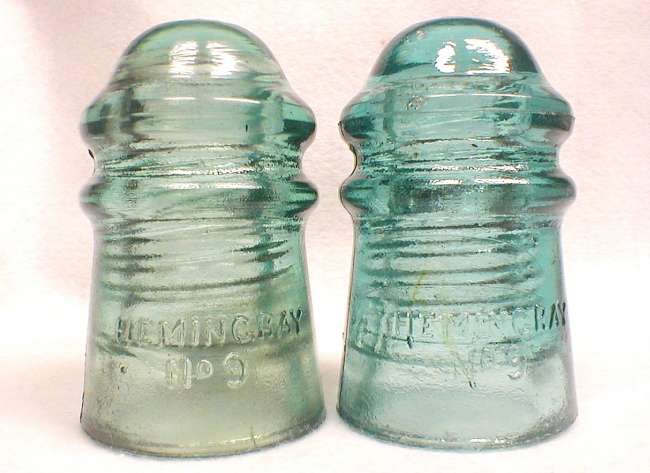 Here are the 2 coolest Hemi ponies I have in my collection. Both are smooth bases which dates them to 1893 just before they patented the drips, plus they are mould mates with the embossing being exact on both but two different colours. Left is light aqua and right is blue aqua. Best part is...they're both script! |