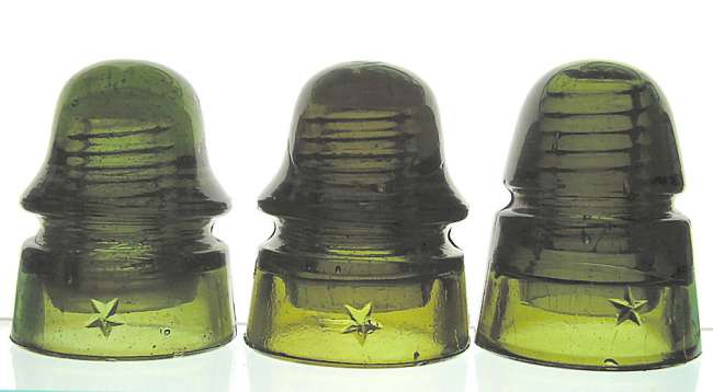 I picked up the signal in the middle at the recent LSIC Christmas Party and it compares favorably with my Star beehive on the right. On the left is an olive Star signal. I'm calling the signal in the middle and the beehive olive amber based on the comparison to the signal on the left. Anyone else have any thoughts? I noticed olive amber in not a listing for the Star signal, but it is for the beehive. |