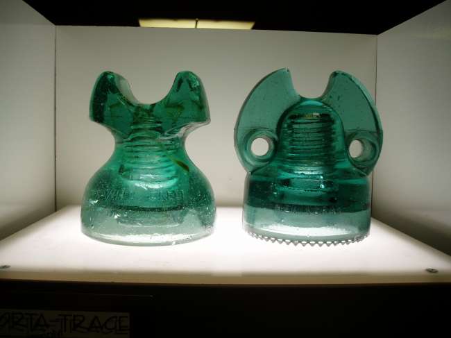 These two I picked up at 2 different antique stores this past summer. The CD 253 Knowles is a pretty yellow green with a huge snotty milky streamer running thru it. The other is a Hemingray Columbia in beautiful shape and leaning towards Hemi Blue. Both are just about mint and I got them for less than 50 bucks for the pair. They are still out there! |
