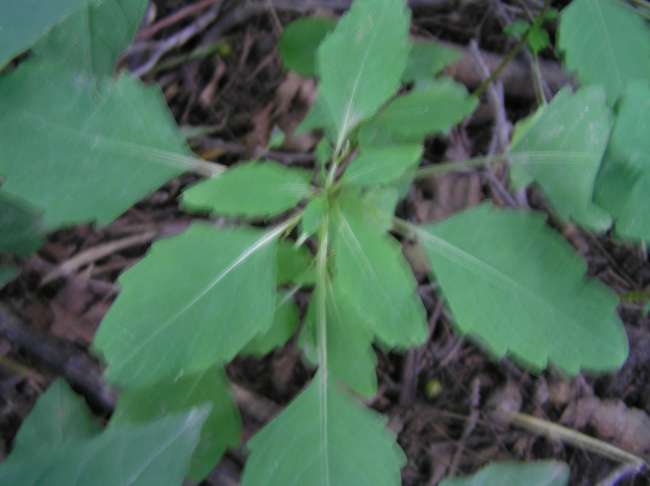 Here is a fuzzy (sorry!) shot of the Jewelweed plant. It grows in damp shady woods in the midwest, and maybe further. The claim to fame about it is if you break off the plant and squeeze out the juice, it will help relieve the effects of poison ivy and insect bites/stings. Look for the light green scalloped leaves and white veins. The stem resembles a bean sprout in texture and toughness. They don't last very long as they are quick to wilt. Next time you have an itch in the late spring/summer woods, give it a try. |
