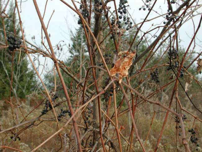 This is the last of the vine plants I am going to post. This woody vine just about everyone knows or has had to climb through to get to a pole and should become familiar with it. These can be thick or thin, many forked and usually matting and overtaking the entire tree or pole rapidly. The grapes are small versions of the purple Concord grape, are small, bitter and edible plus make excellent wines, juices and jellies. The vines however have uses too, in the craft hobby they are well liked for wreathing and rustic decor, for climbing, they are an excellent last ditch item to get out of a pinch, and, these vines, if you cut them towards the base about neck high will give clean, potable water to drink. The amount of potable water depends on the vine size. You have to cut the vine at angle or V with the pointed end down. |