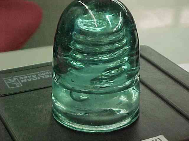 A great find and mint to boot. This 133.2 is a nice blue aqua which also has plenty of milk that starts in the skirt and swirls all the way around the threads! ON A DOWNED POLE..........CRAZY!!!!!
